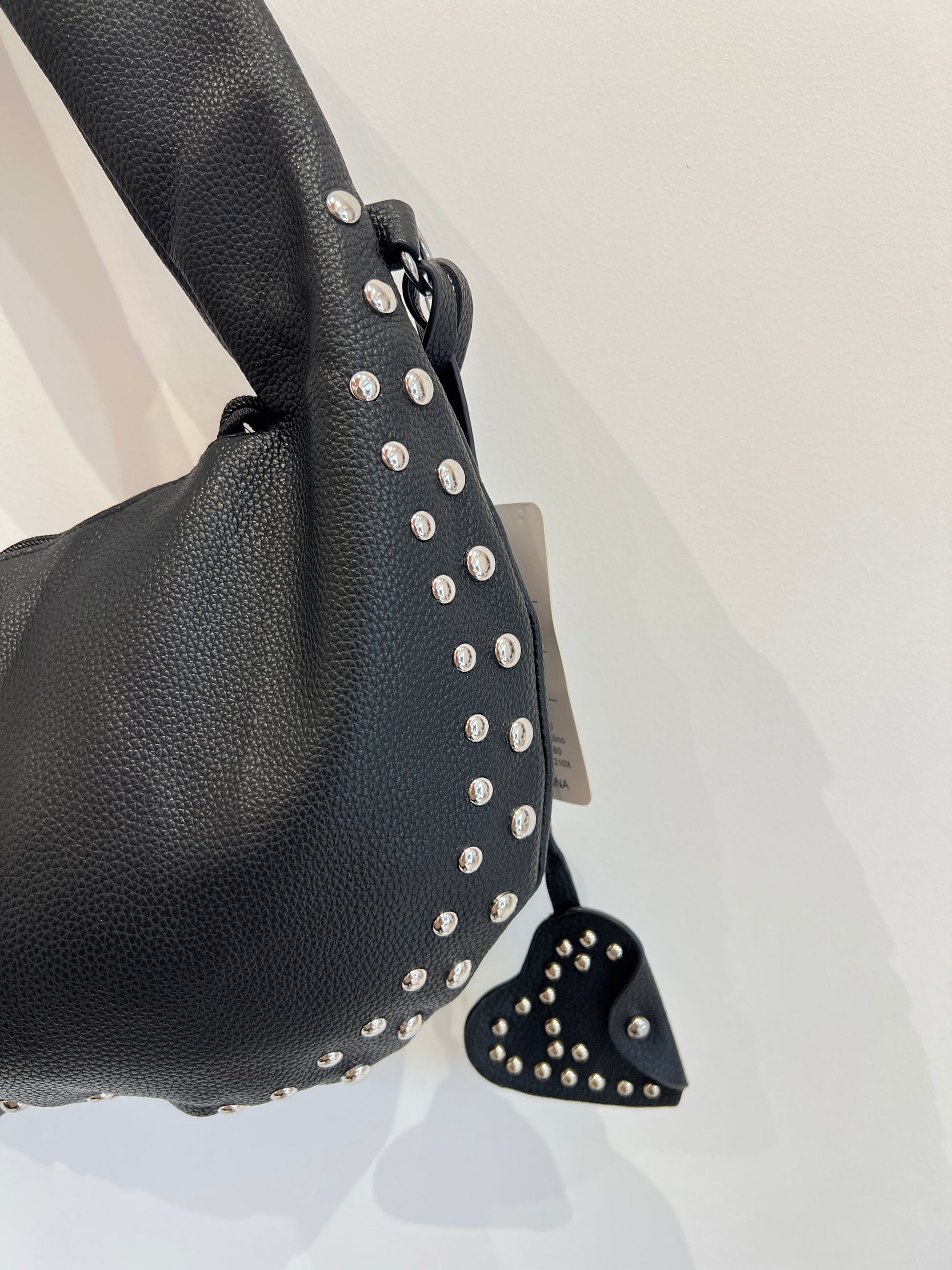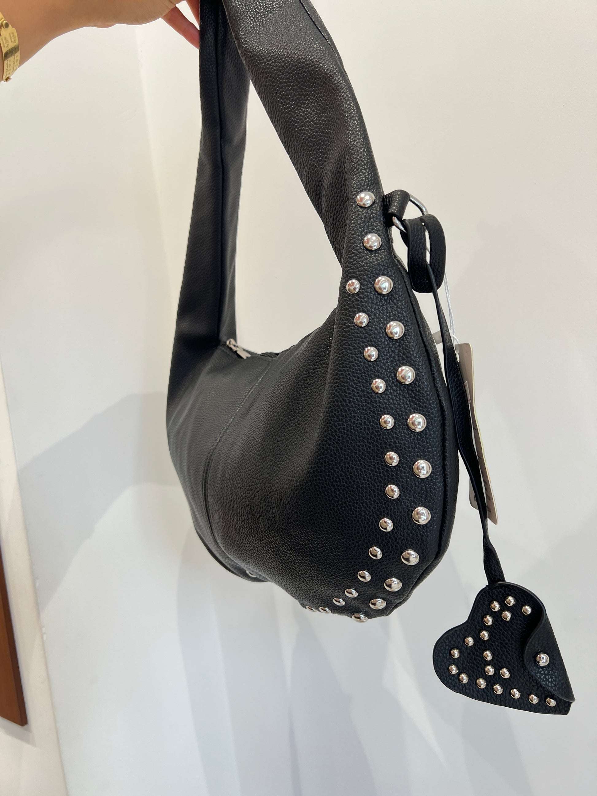 Borsa in ecopelle , mezzaluna con ciondolo abbinato e tracolla regolabile