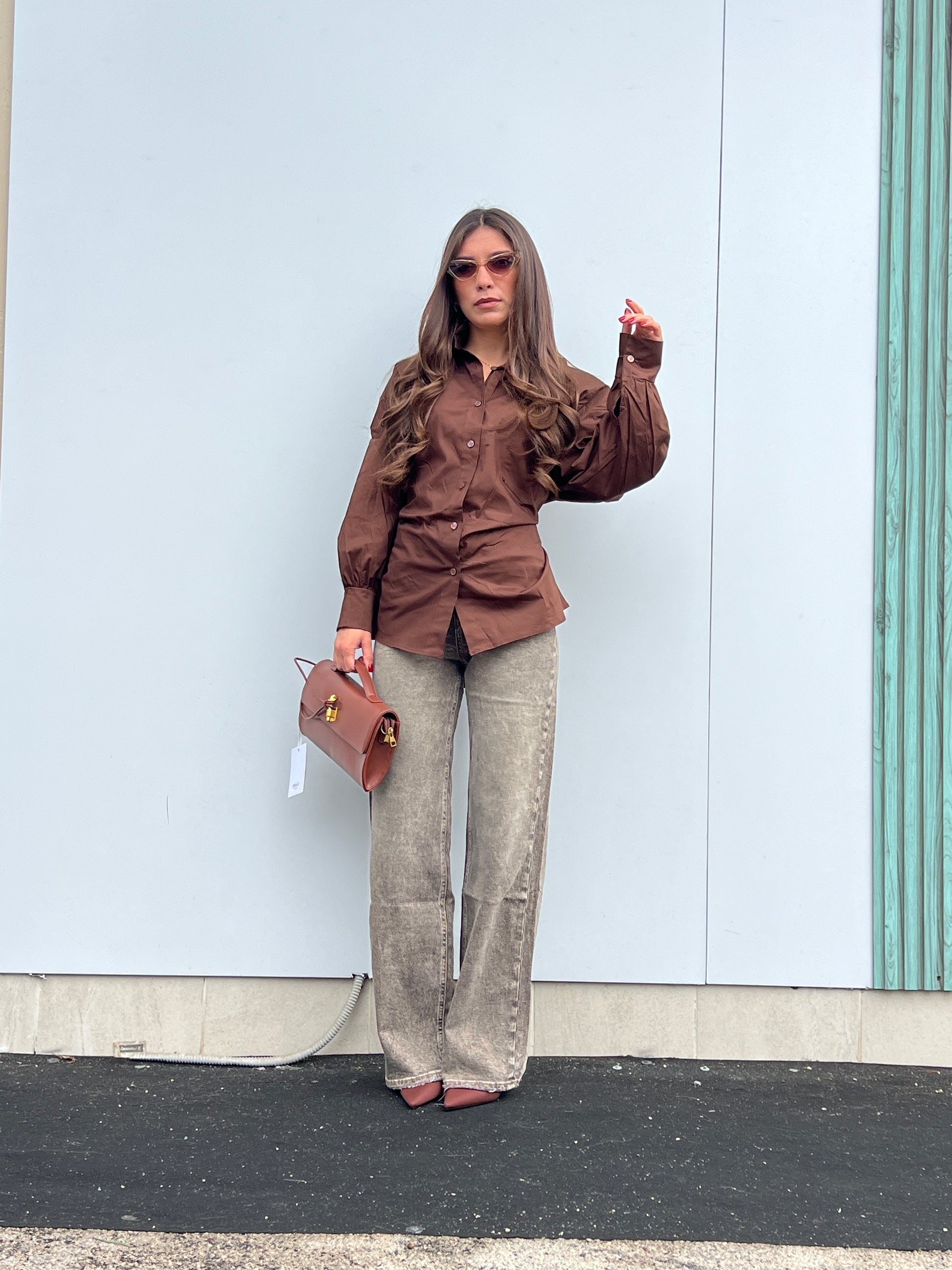 Camicia in 100% cotone con spallina strutturata e stringa sul retro