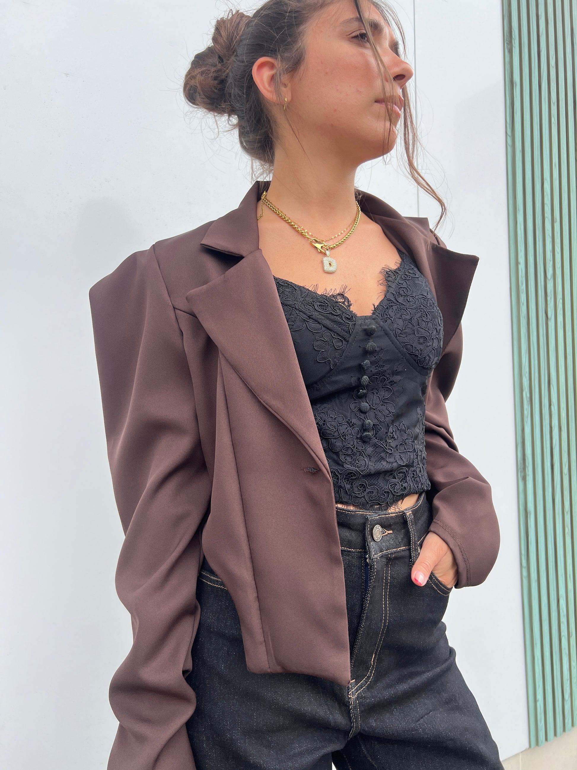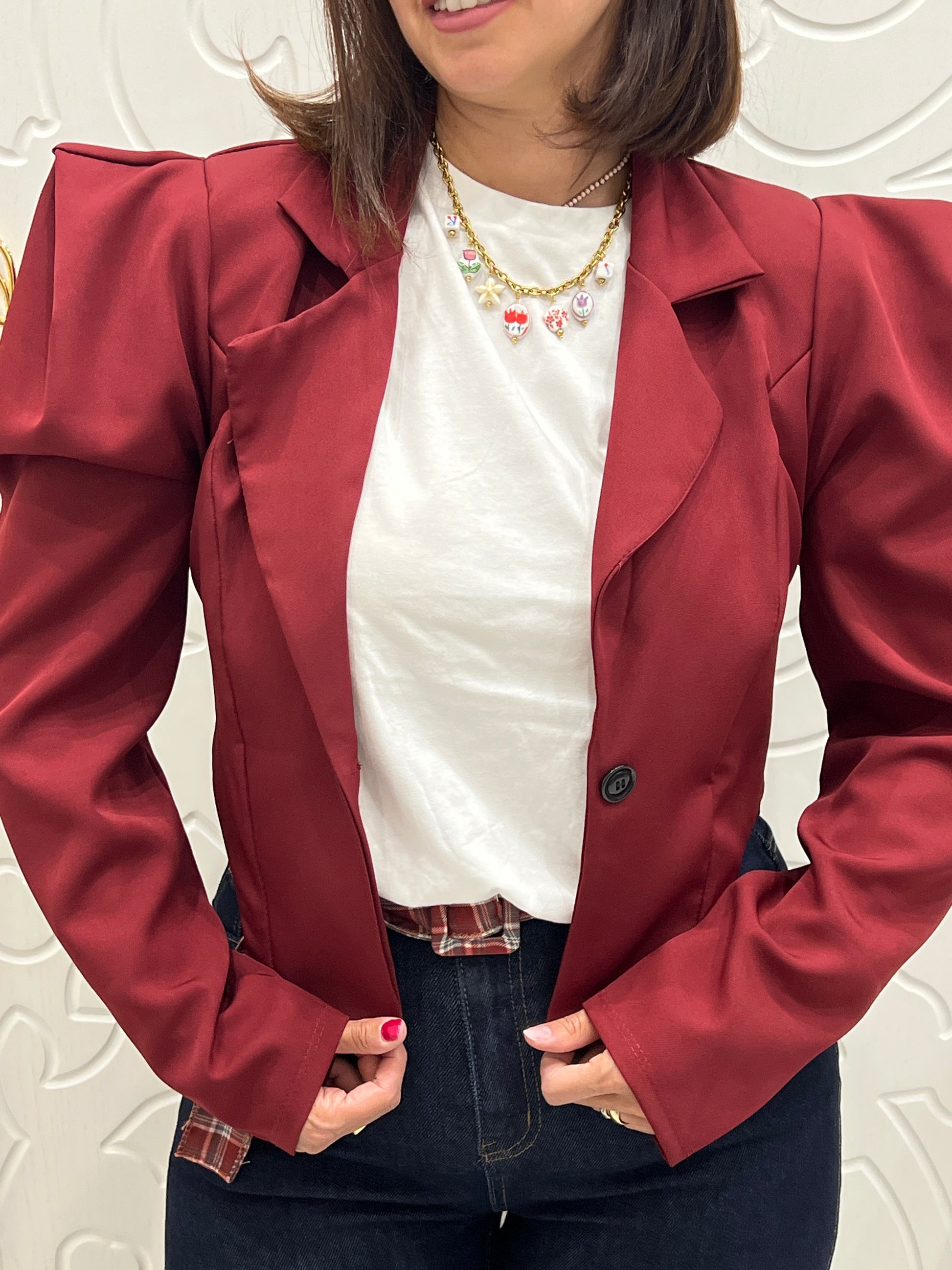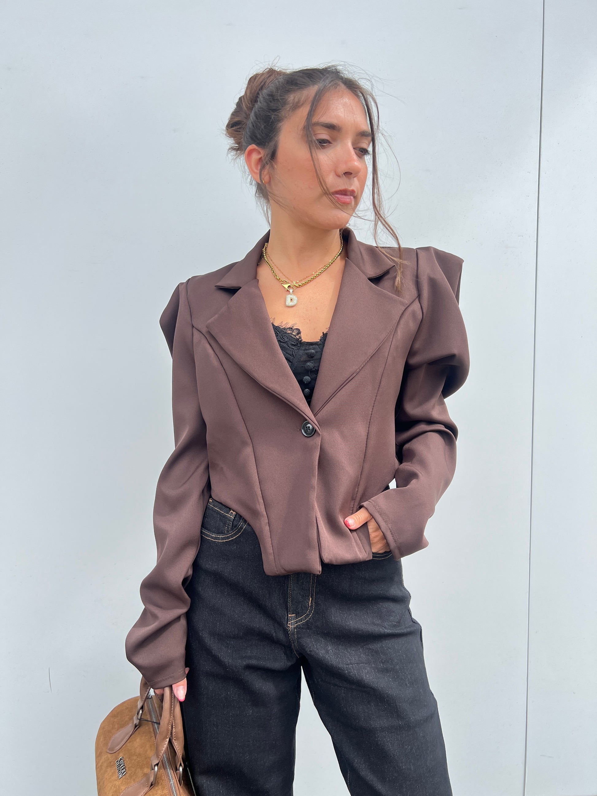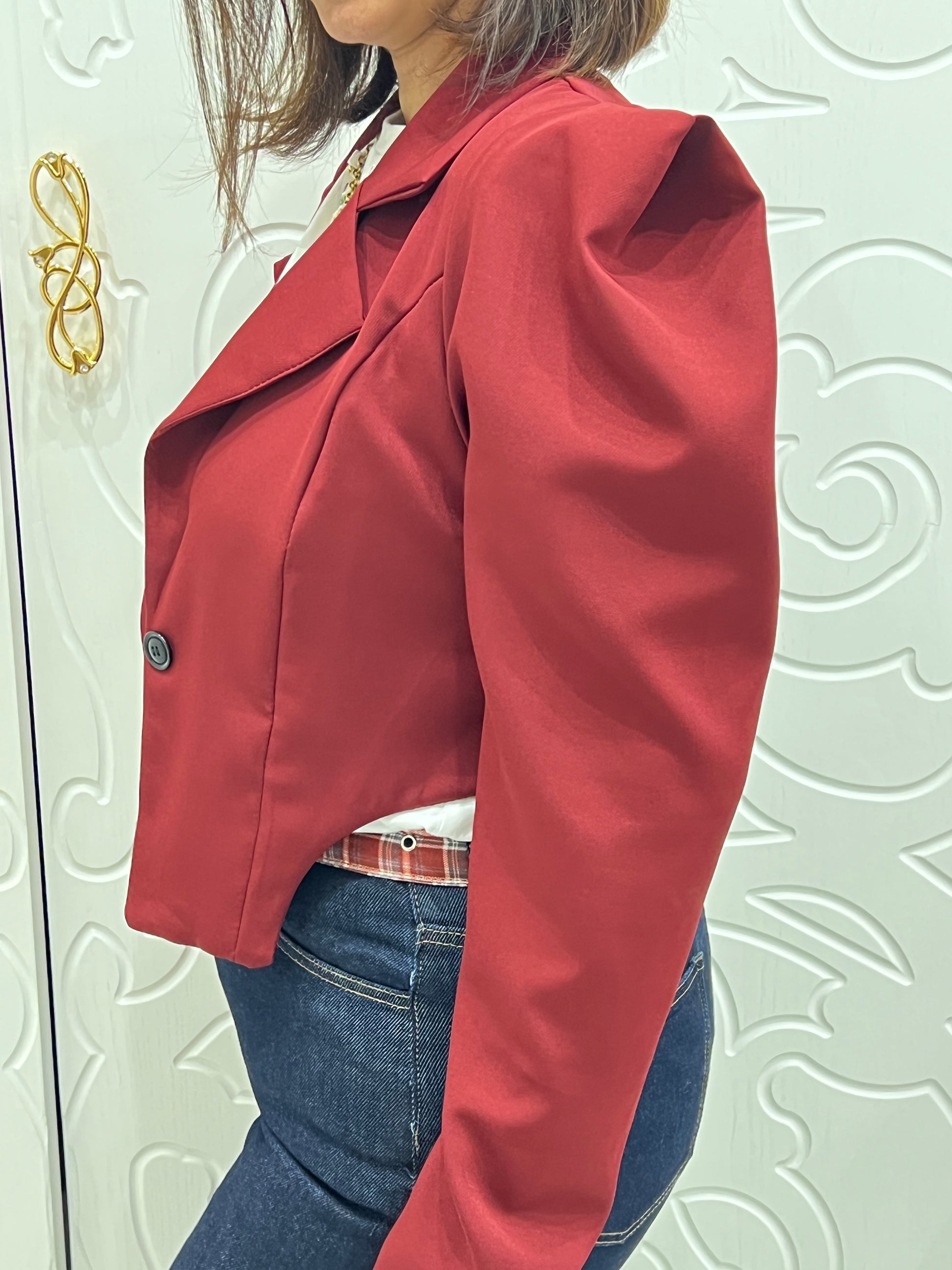 Giacca con spallina e manica a sbuffo , taglio super particolare sul davanti, unico bottone . Veste fino a L