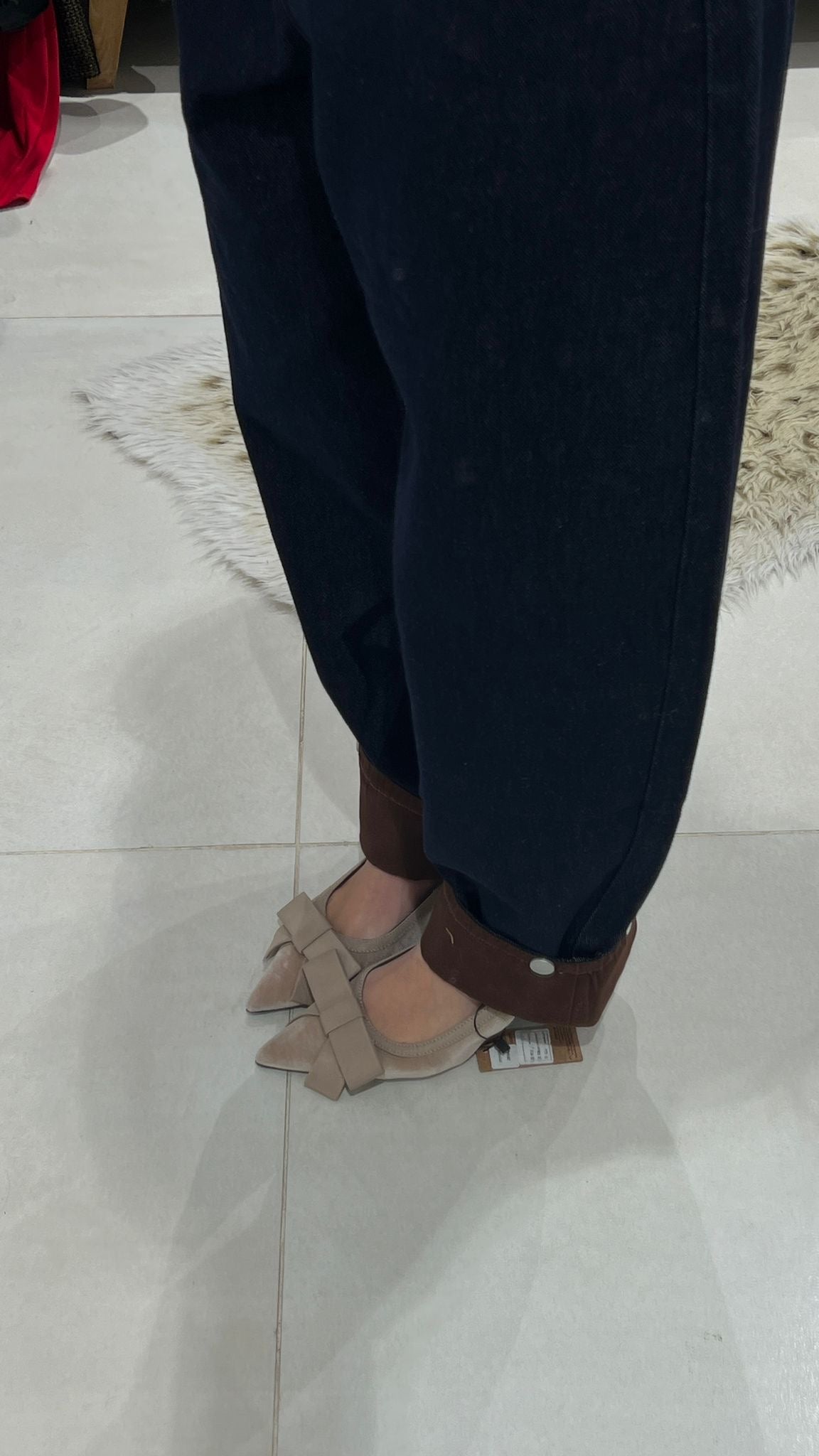 Jeans in tela poco elastica, con tasche in risalto e risvoltino color cuoio