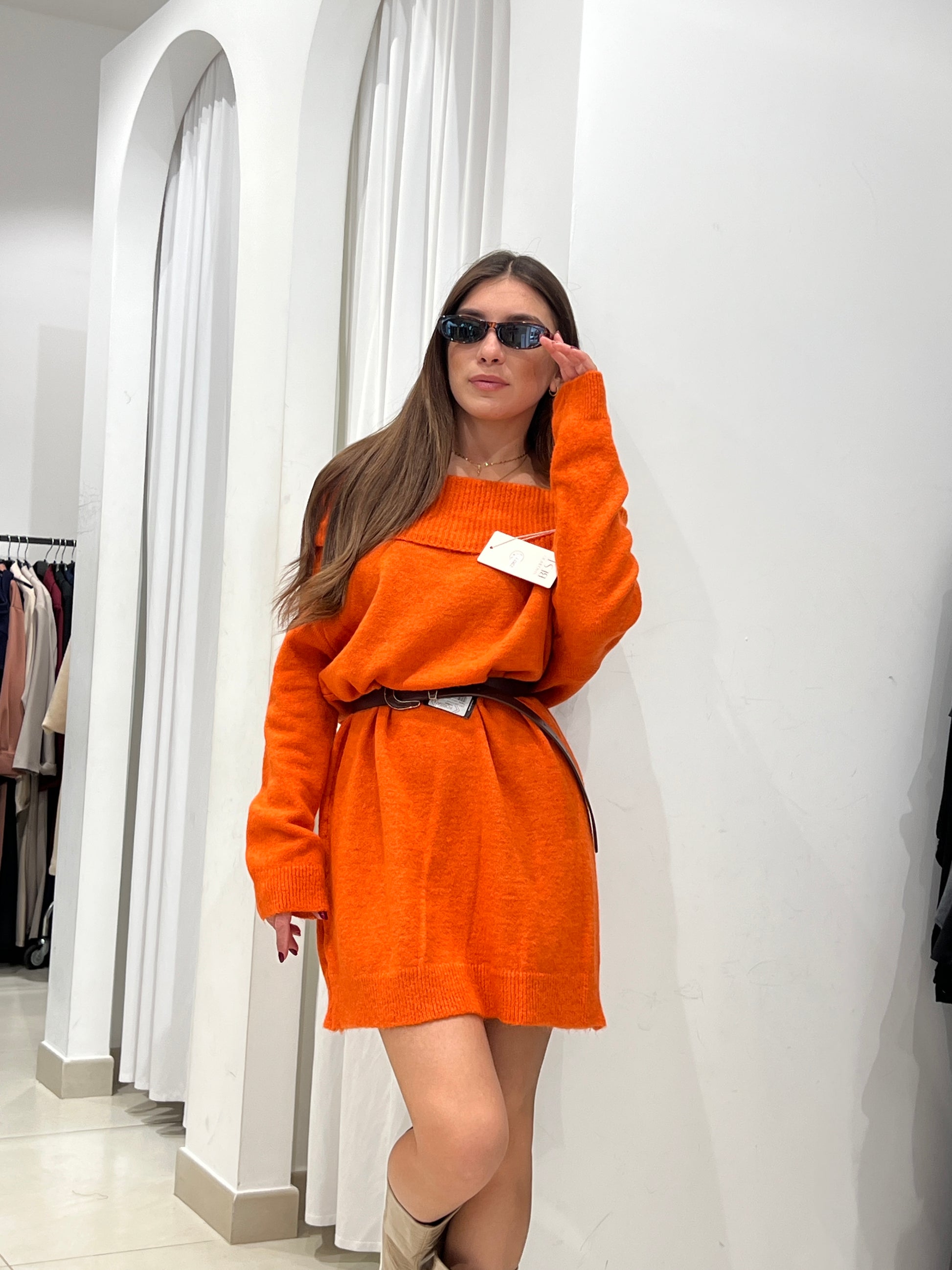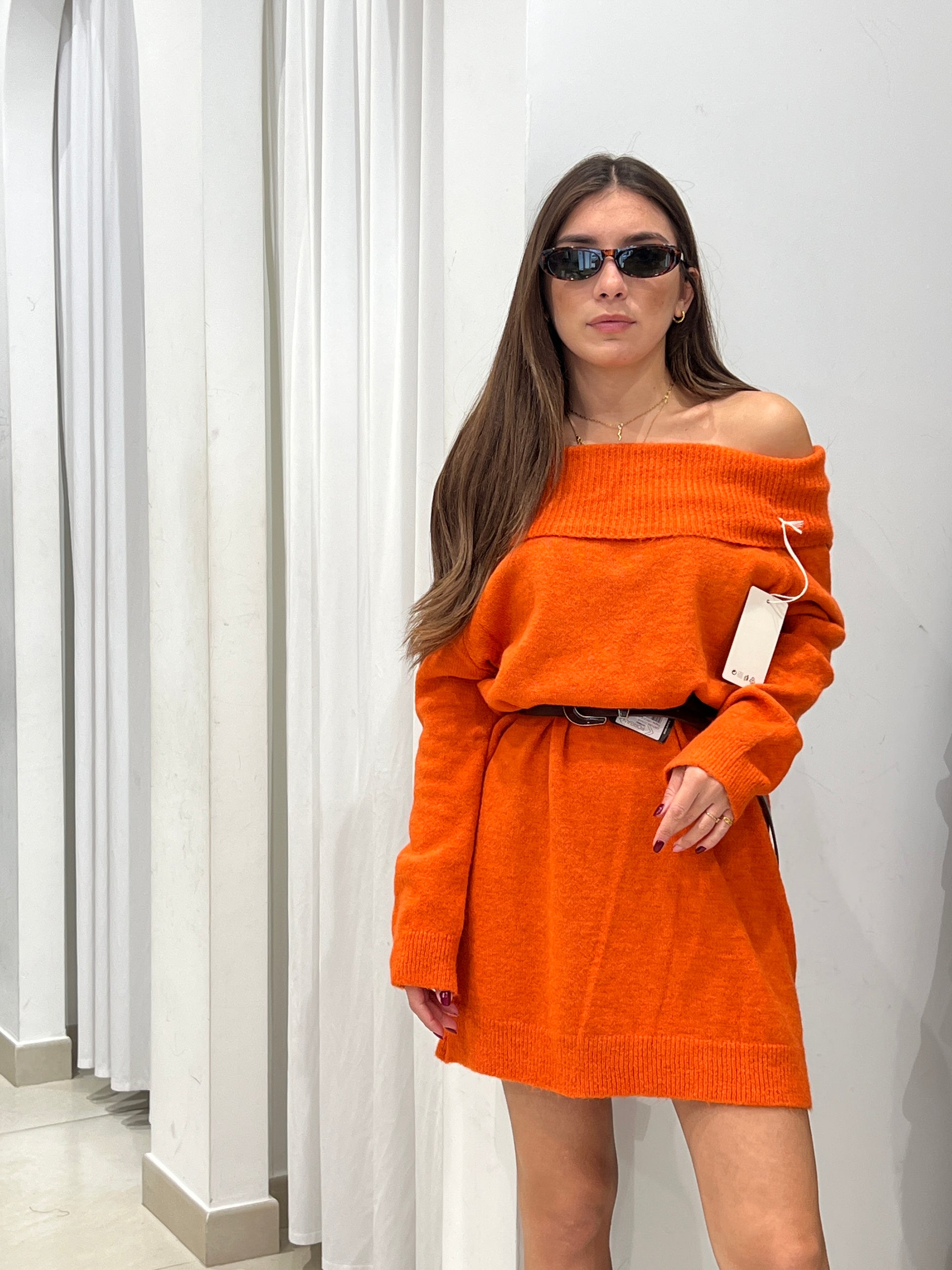Maxi pullover in lana con scollo a barca veste fino a 46-48