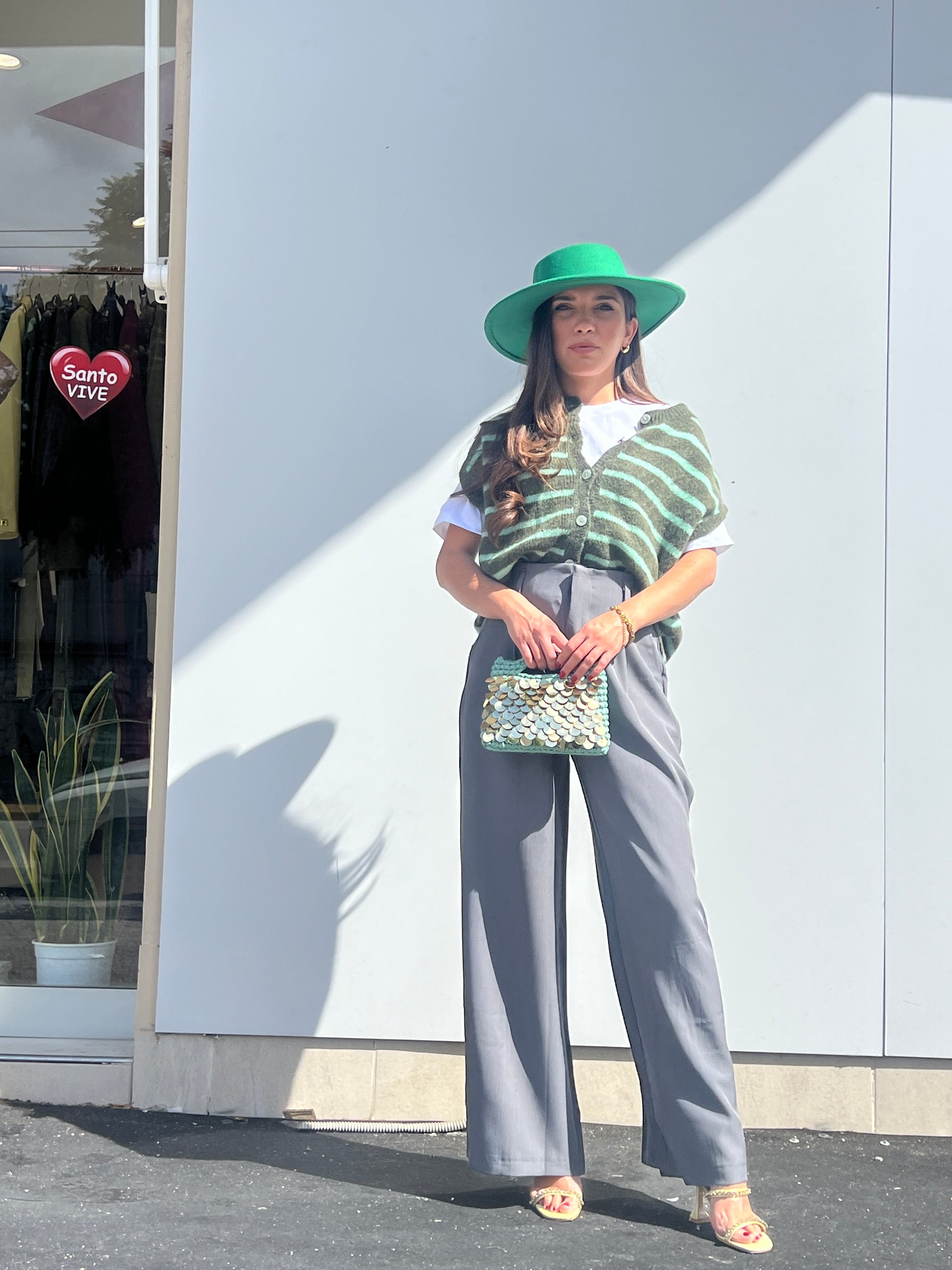 Pantalone classico vita alta con bottoncino a scomparsa