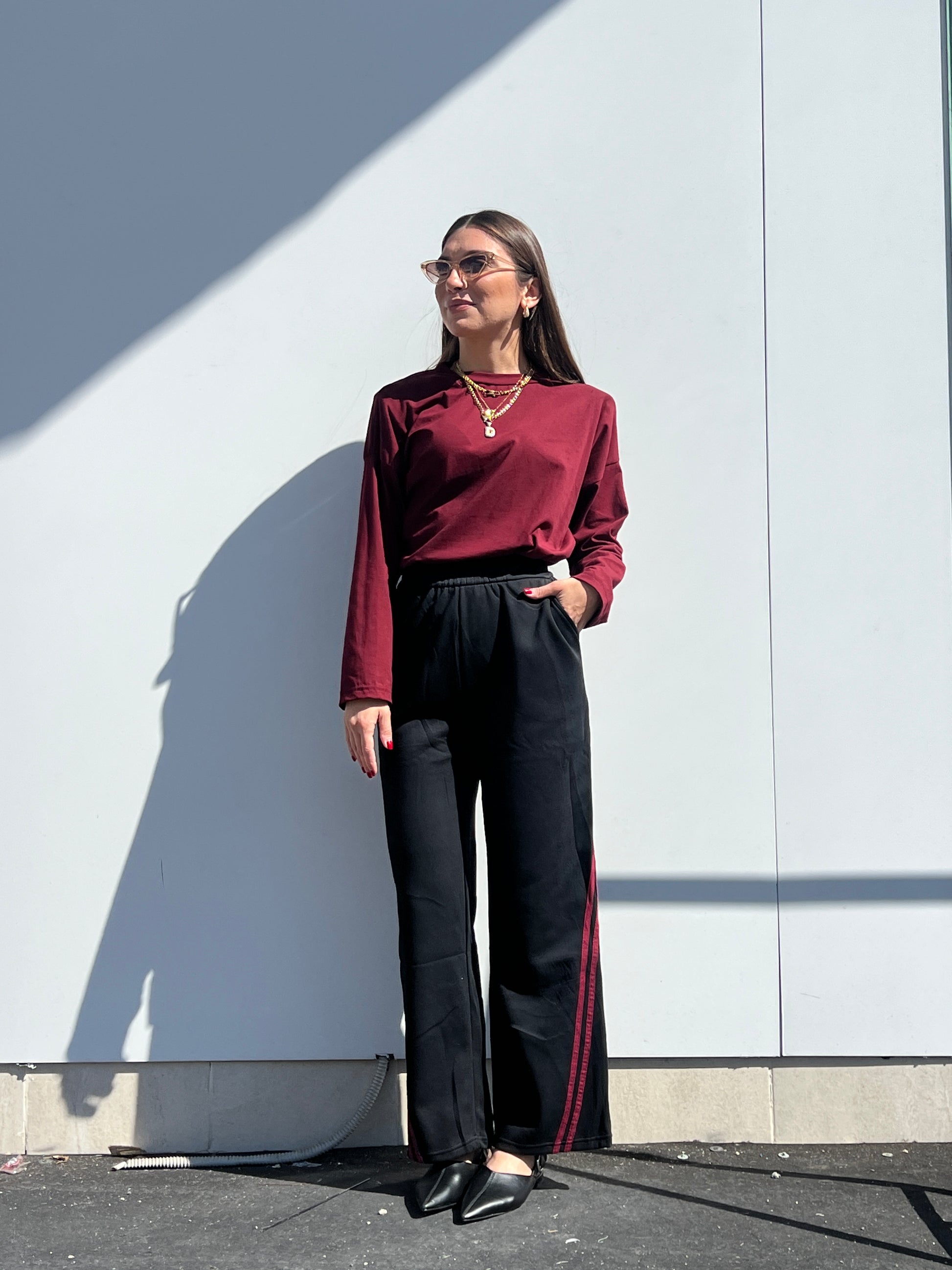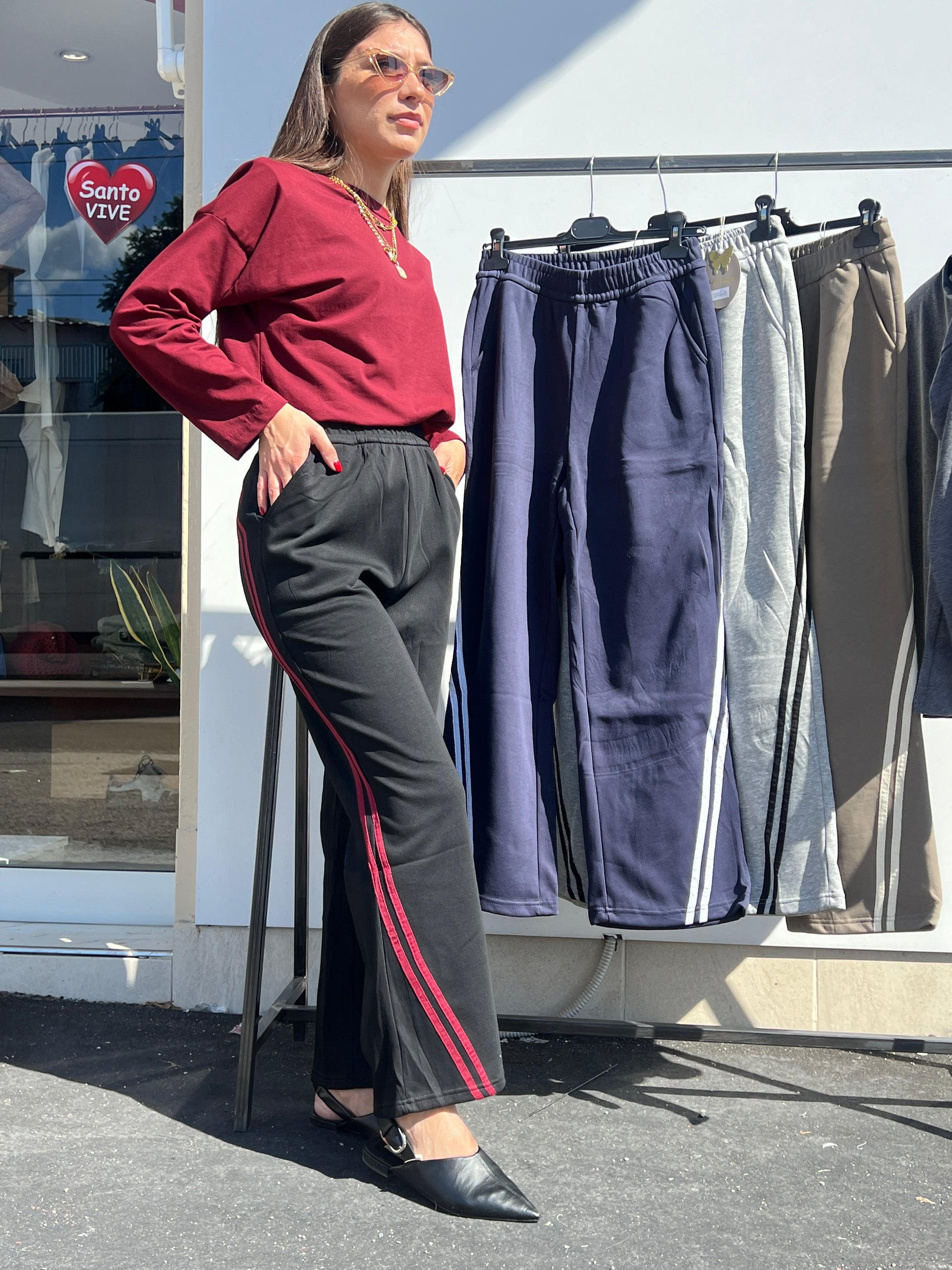 Pantatuta con elastico in vita e bande trasversali
