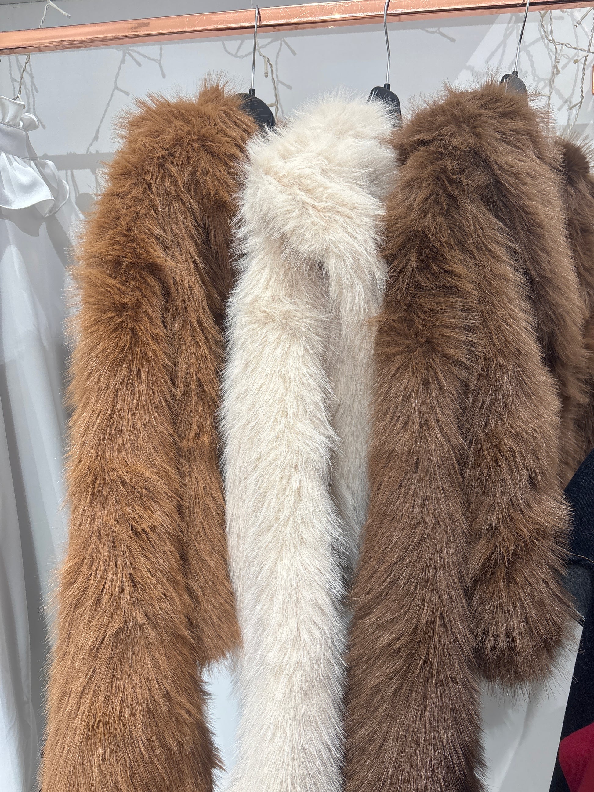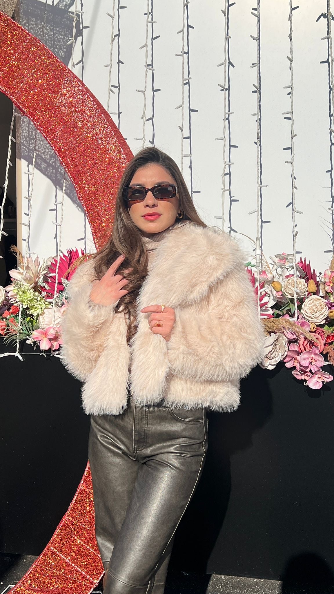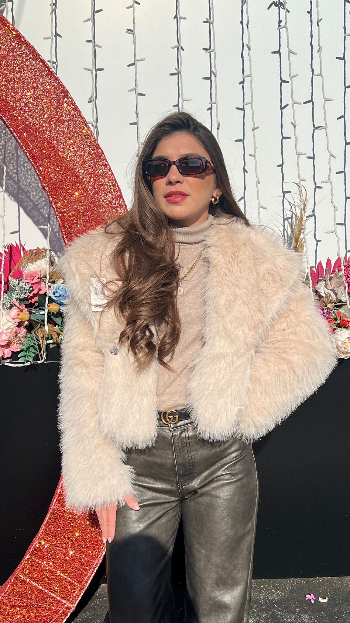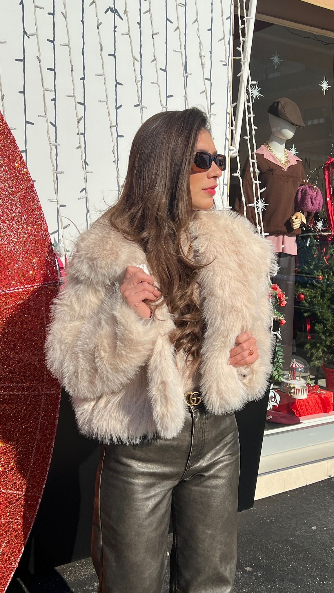 Eco pelliccia foderata con collo sciallato , modello crop, taglia unica veste fino a 44-46