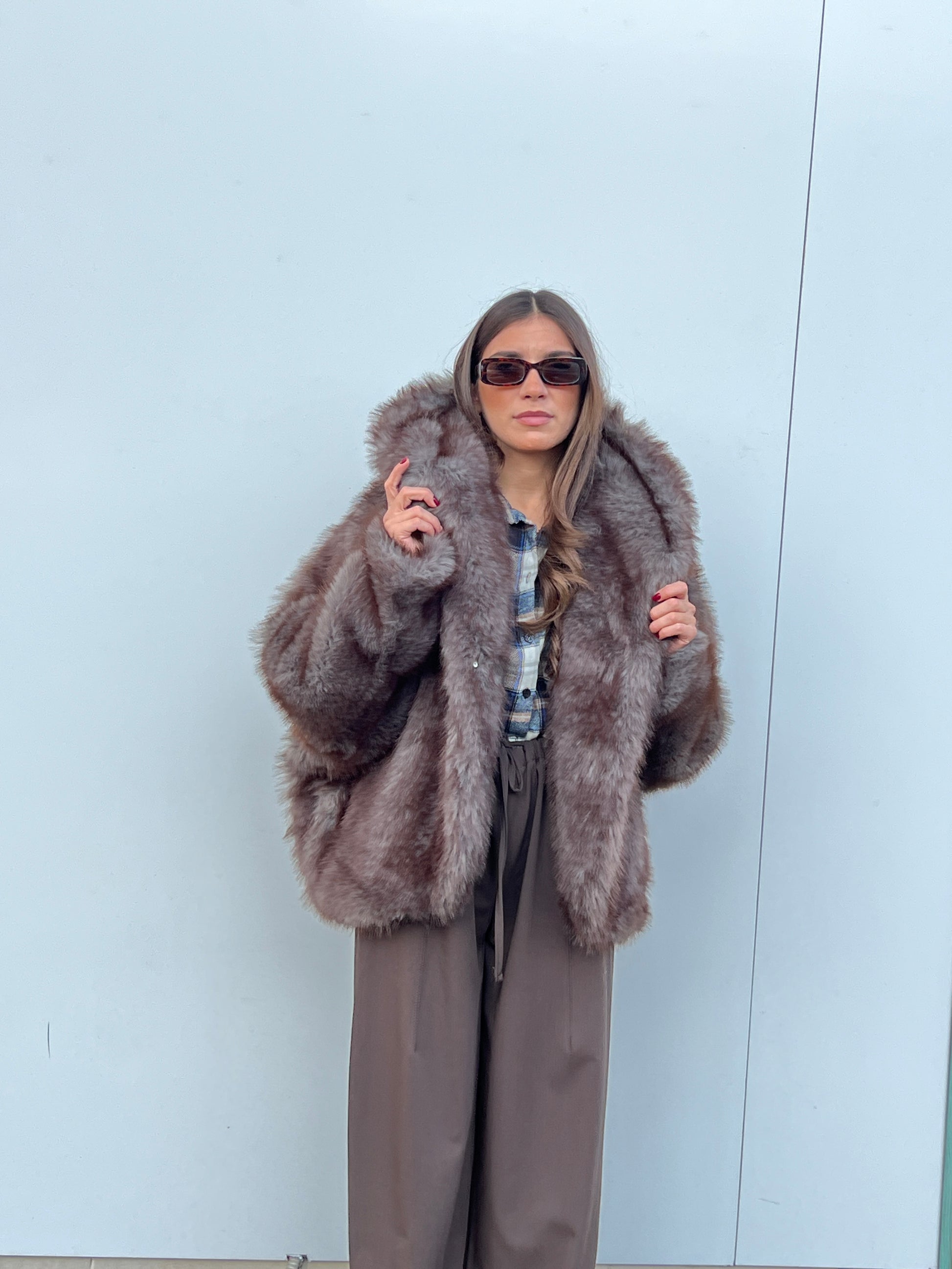Pelliccia over size , veste fino a 48, morbido con pelo lungo e sfumato
