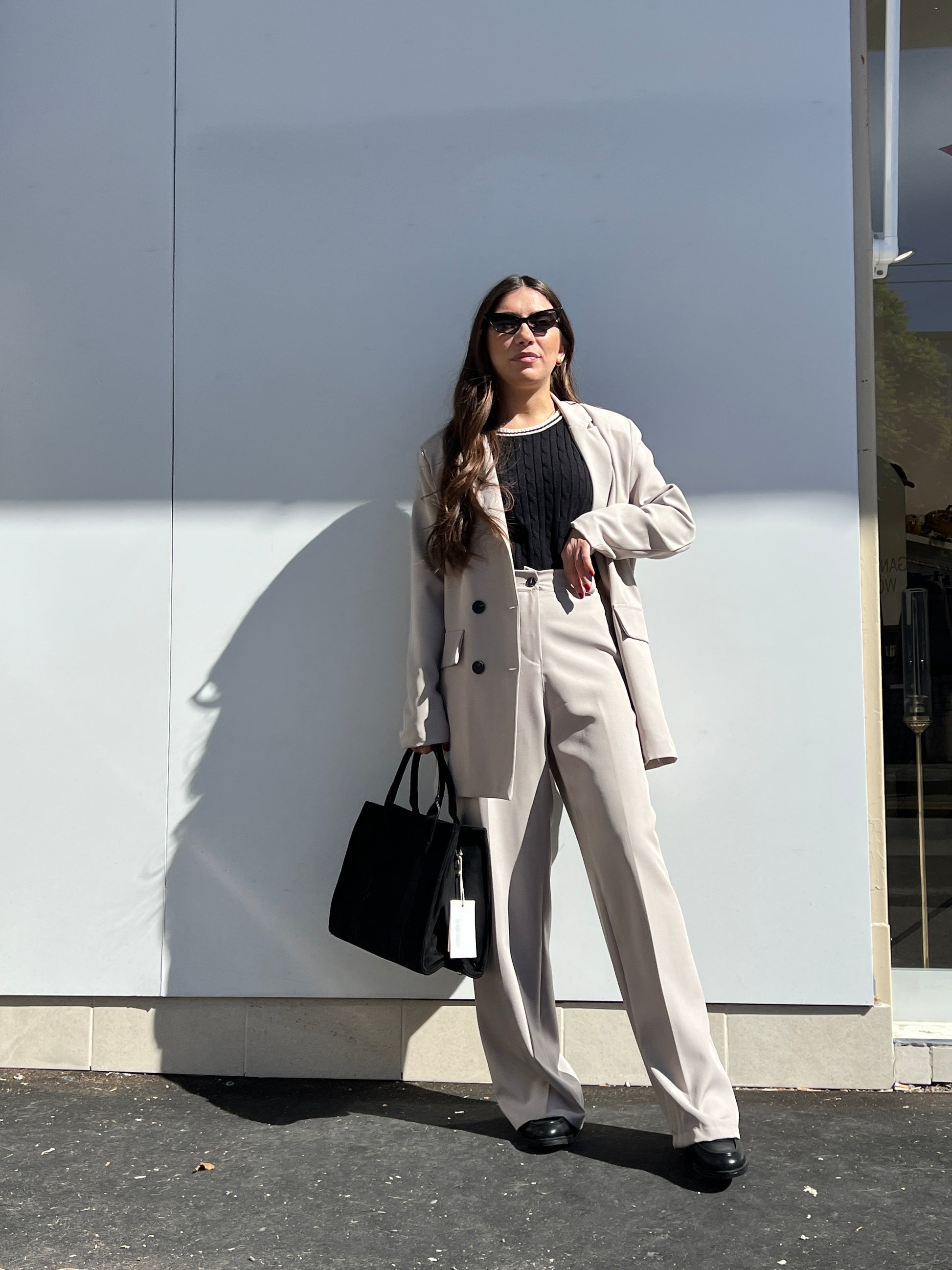 Tailleur Grigio , colore neutro , con bottoni neri , giacca over , veste fino a 46